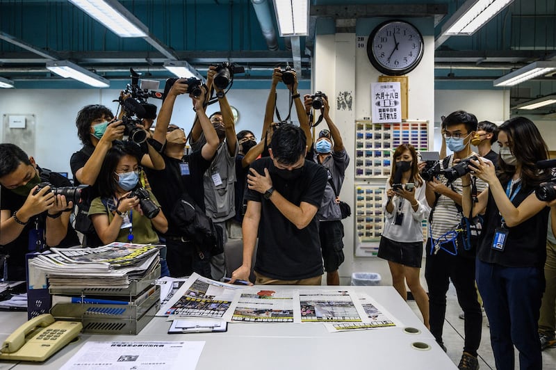 Five days later, as the paper shut down for good, a group of editors and reporters gathered outside the headquarters of Lai's Next Digital media empire, bowing to their readers to show gratitude for their support over the years.