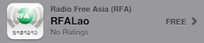 3. ເມື່ອທ່ານເຫັນ RFALao ໃຫ້ click ເອົາ. ໝາຍເຫດ: ຫາກທ່ານ ບໍ່ທັນໄດ້ ລົງຊື່ເປັນ ສະມາຊິກ i-tune store ທ່ານຕ້ອງໄດ້ ຈັດການເລື້ອງນີ້ກ່ອນ. ບໍ່ຕ້ອງກັງວົນ ເພາະວ່າ FREE