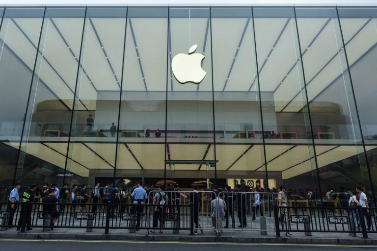 Người dân xếp hàng bên ngoài cửa hàng Apple chờ mua điện thoại